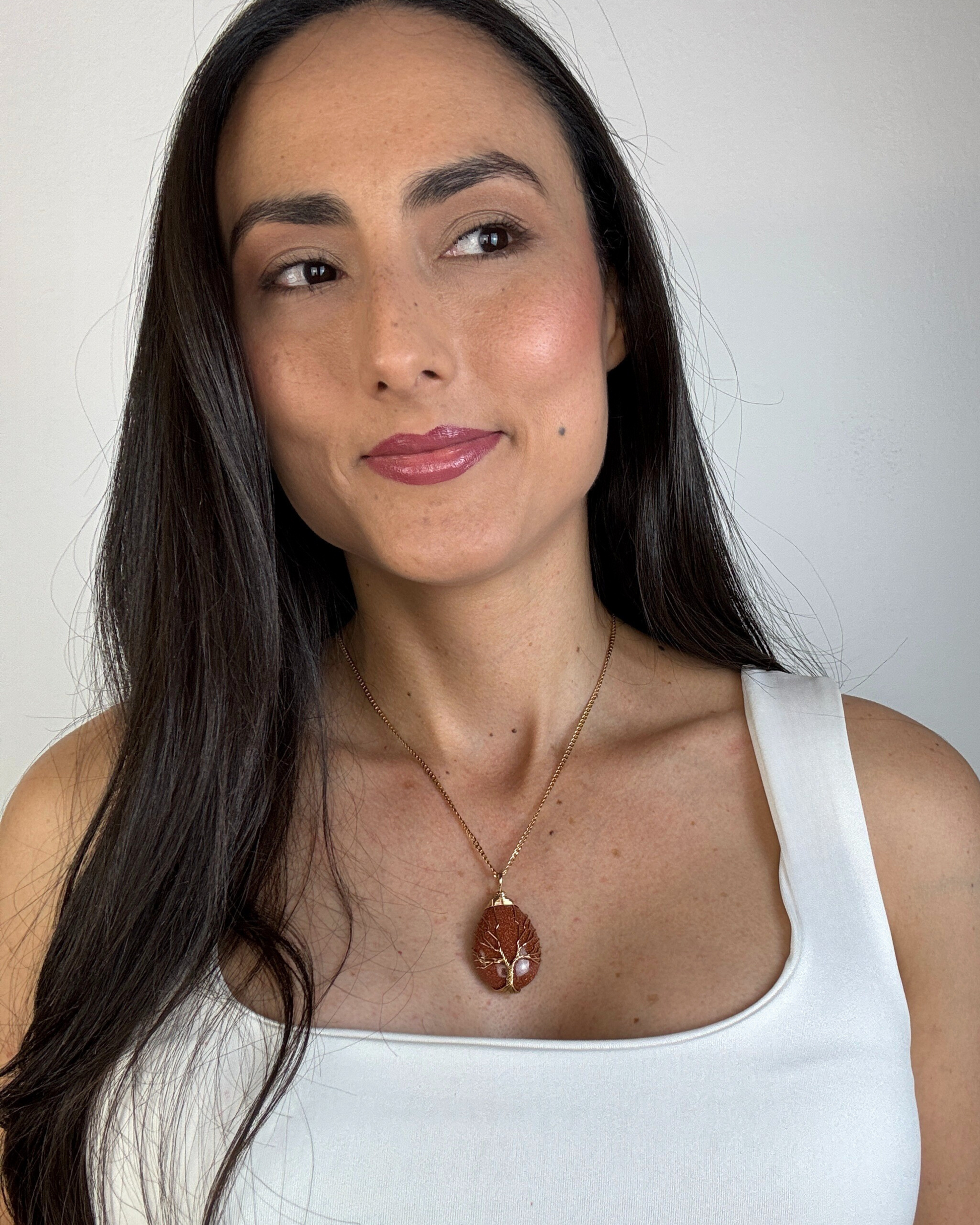 Este collar une la fuerza de la aventurina con el Árbol de la Vida, símbolo de crecimiento y conexión universal, creando un amuleto que recuerda que toda transformación comienza desde las raíces.