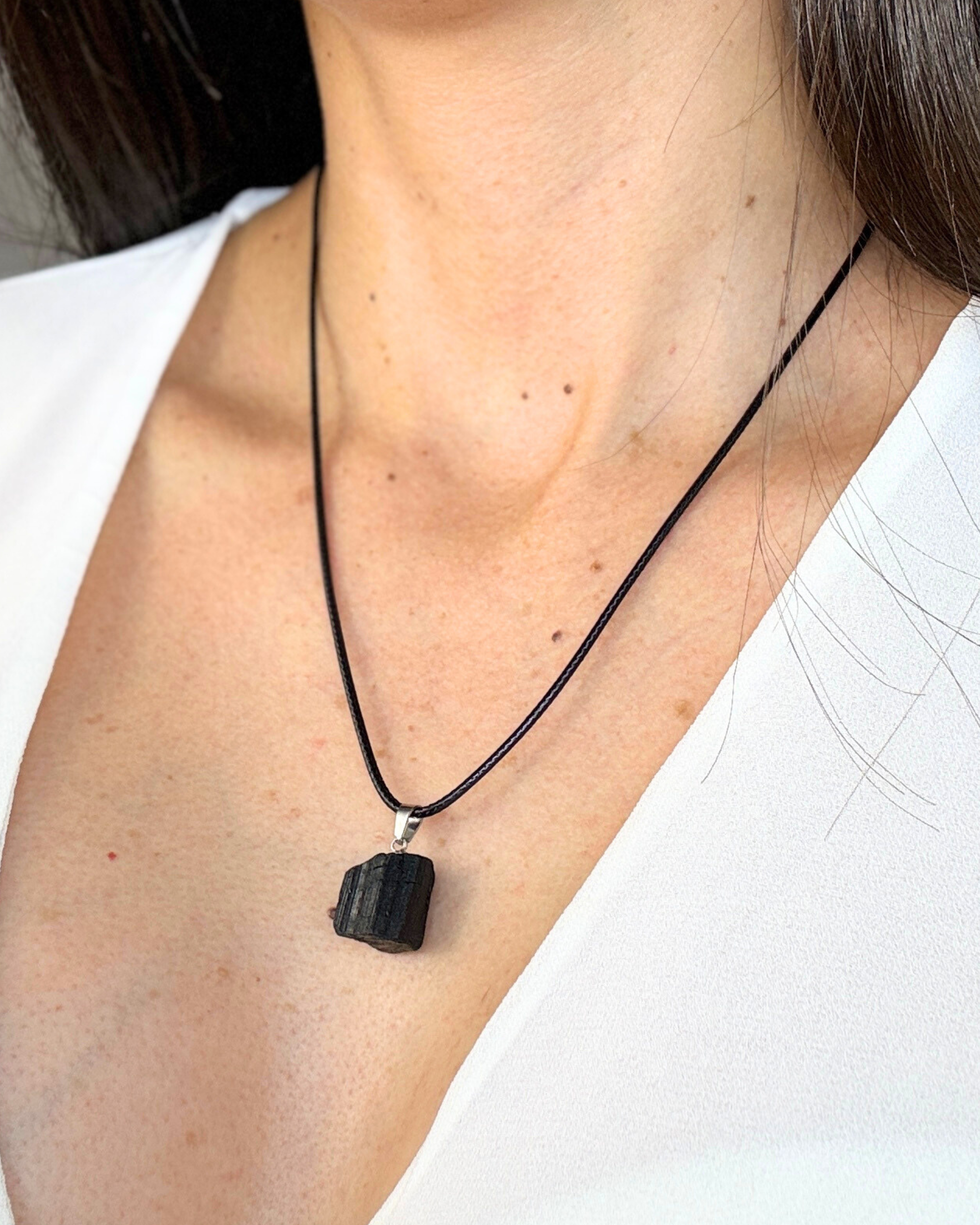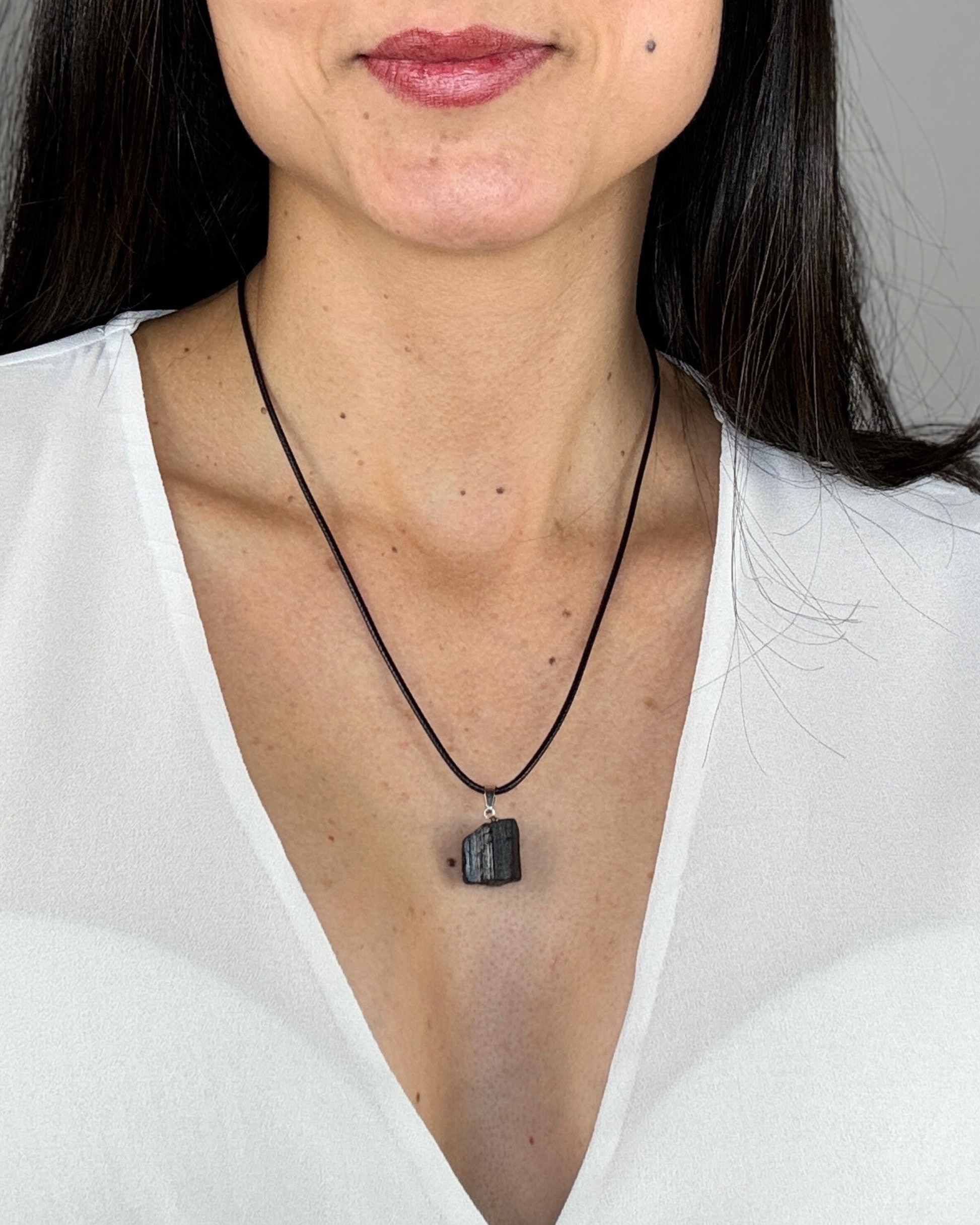 El collar de Turmalina Negra es un recordatorio silencioso de fuerza interior. Su piedra profunda actúa como un escudo energético, ayudando a liberar tensiones, cortar la energía densa y reconectar con la calma que vive dentro de ti.