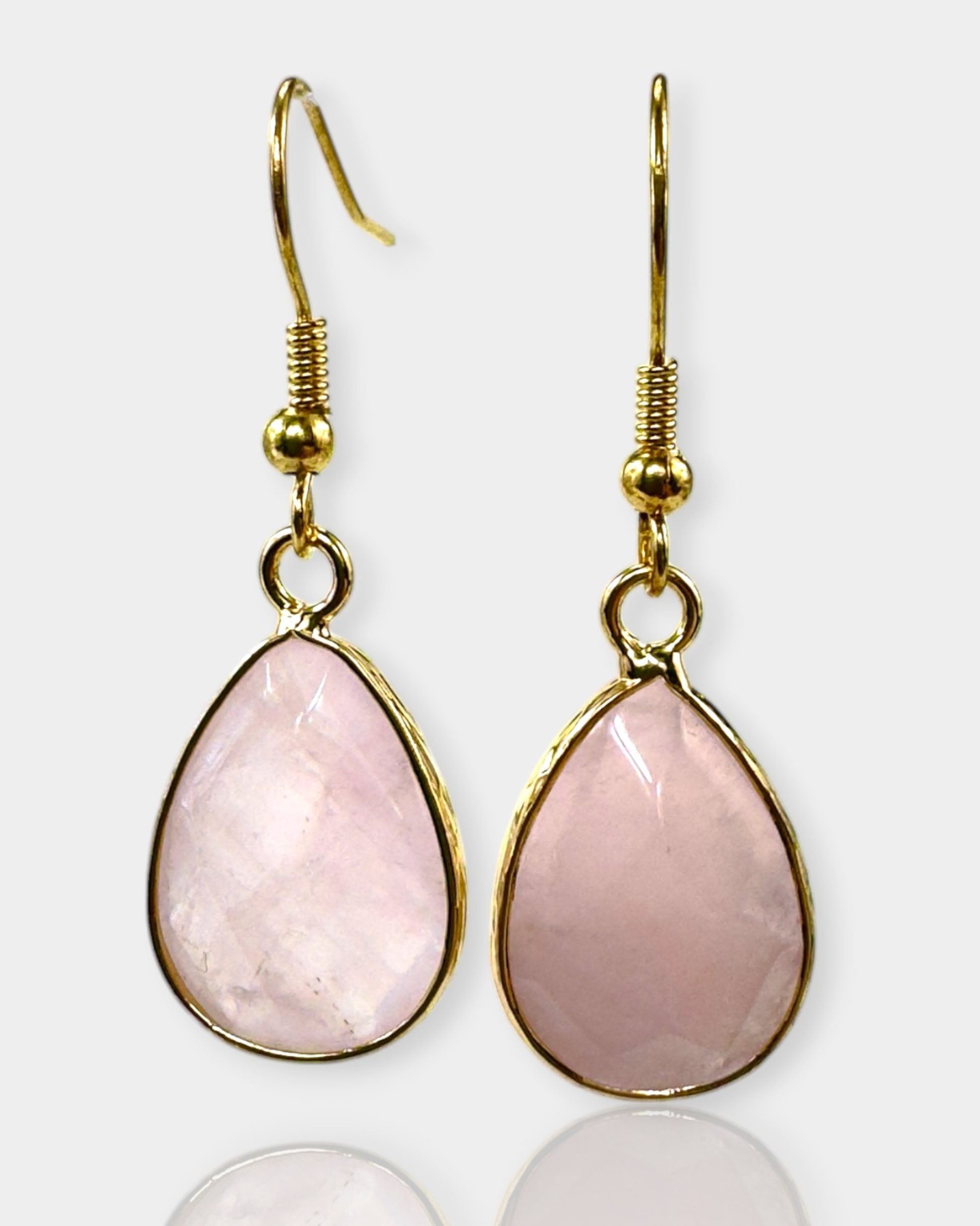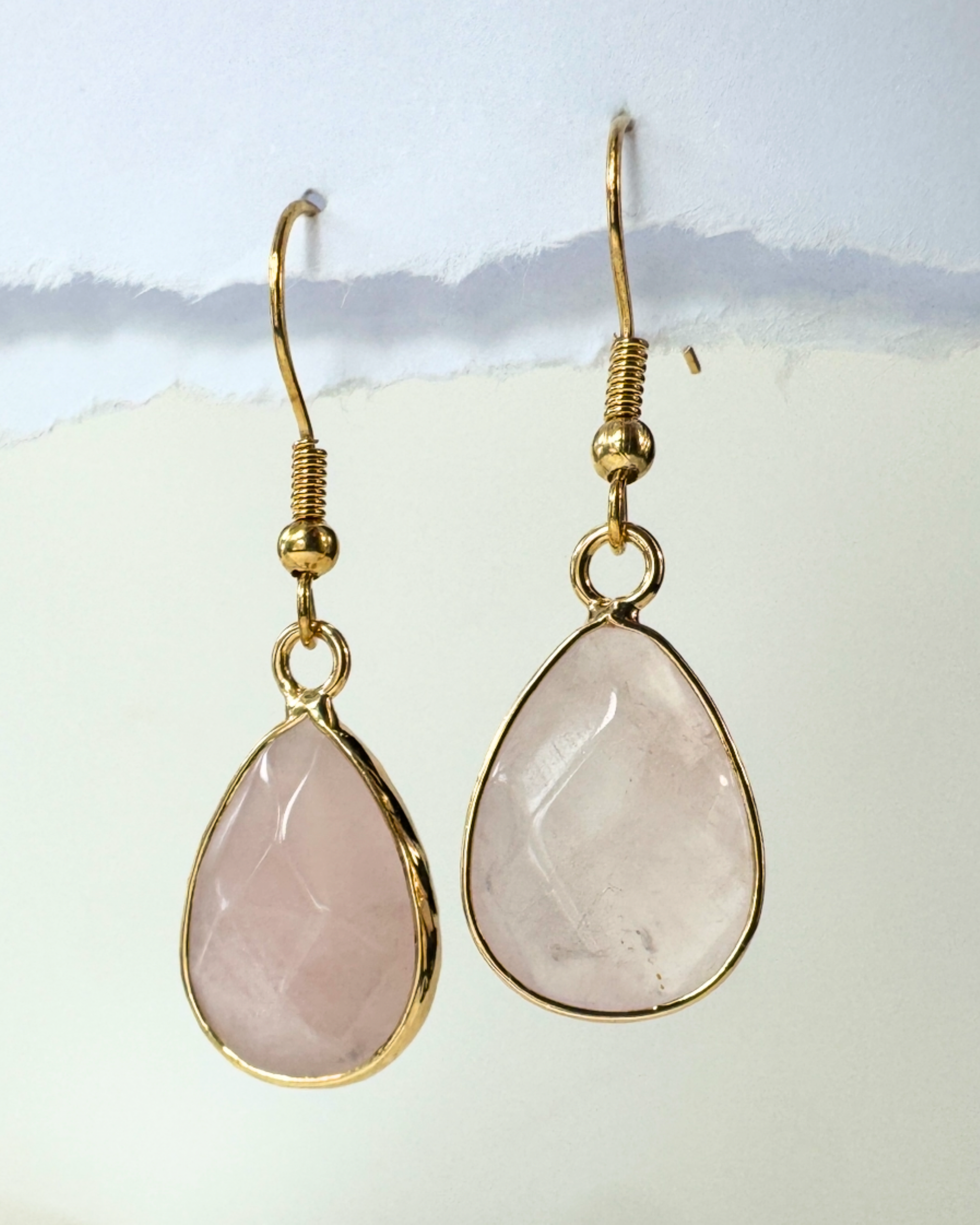 Los pendientes Alma Dorada con Cuarzo Rosa irradian dulzura y amor propio. Este cristal, símbolo del corazón, inspira ternura, perdón y apertura emocional.