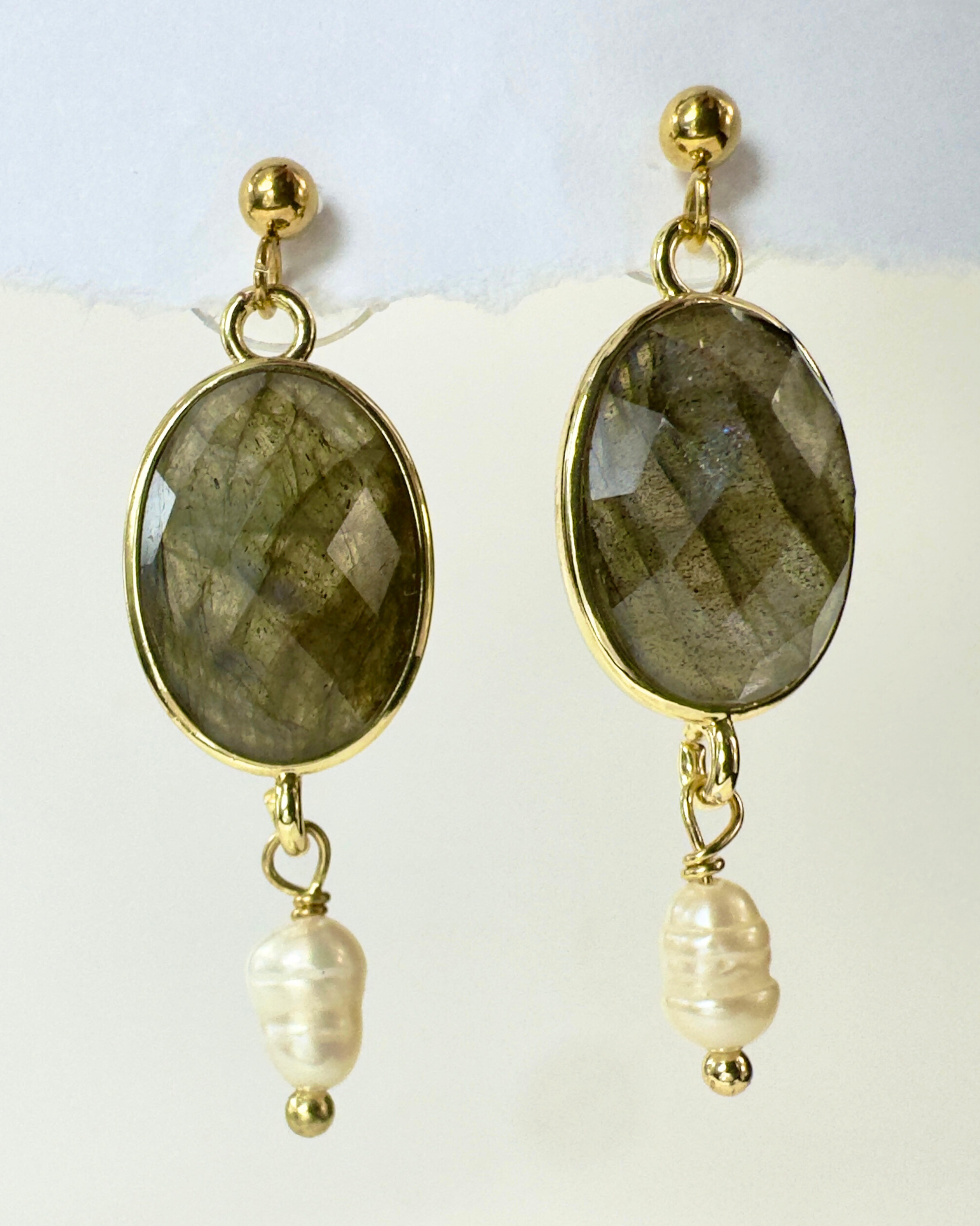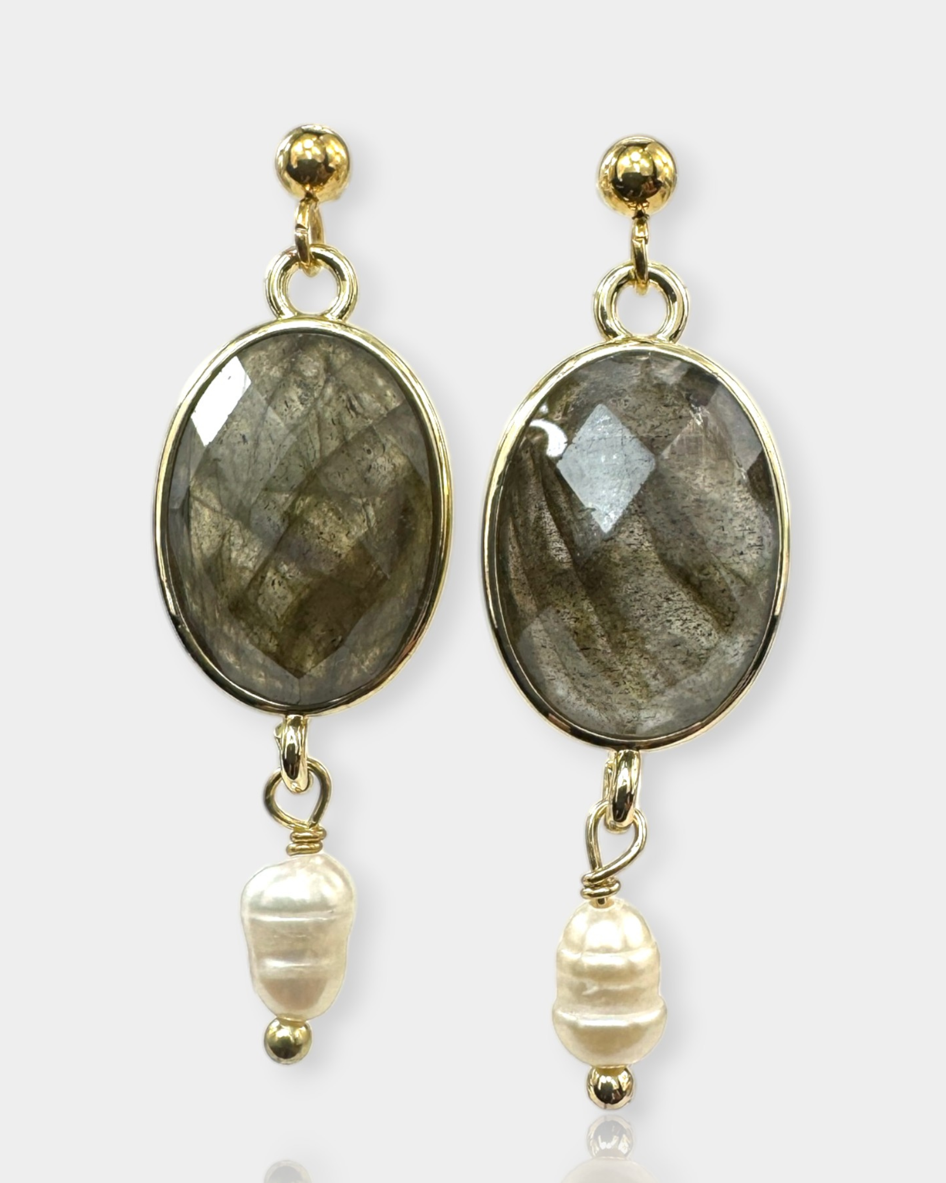 Los pendientes Aura Serena con Labradorita despiertan la intuición y la conexión espiritual. Este mineral mágico protege tu energía y potencia tu capacidad de transformación.