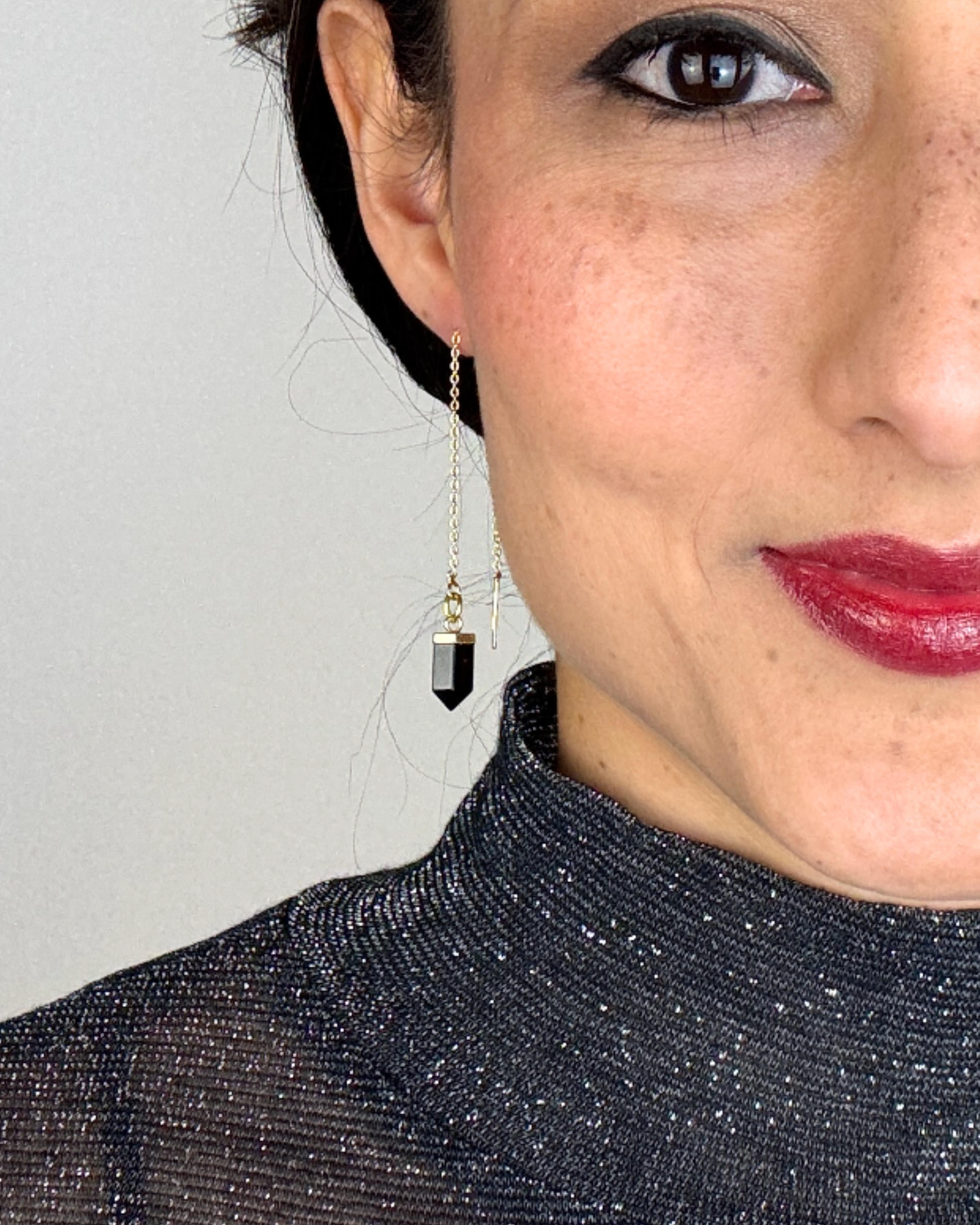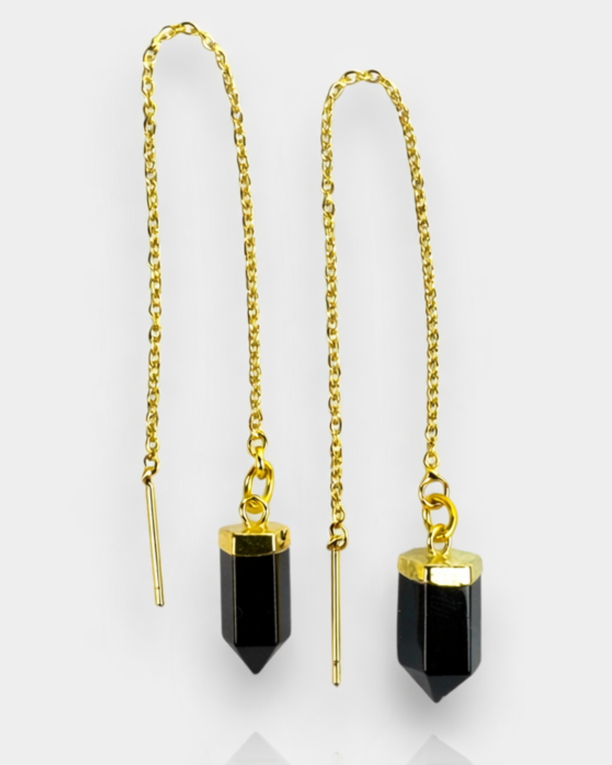 Estos aretes de ágata negra actúan como un escudo energético sutil que te acompaña mientras atraviesas cambios, decisiones y cierres de ciclos.