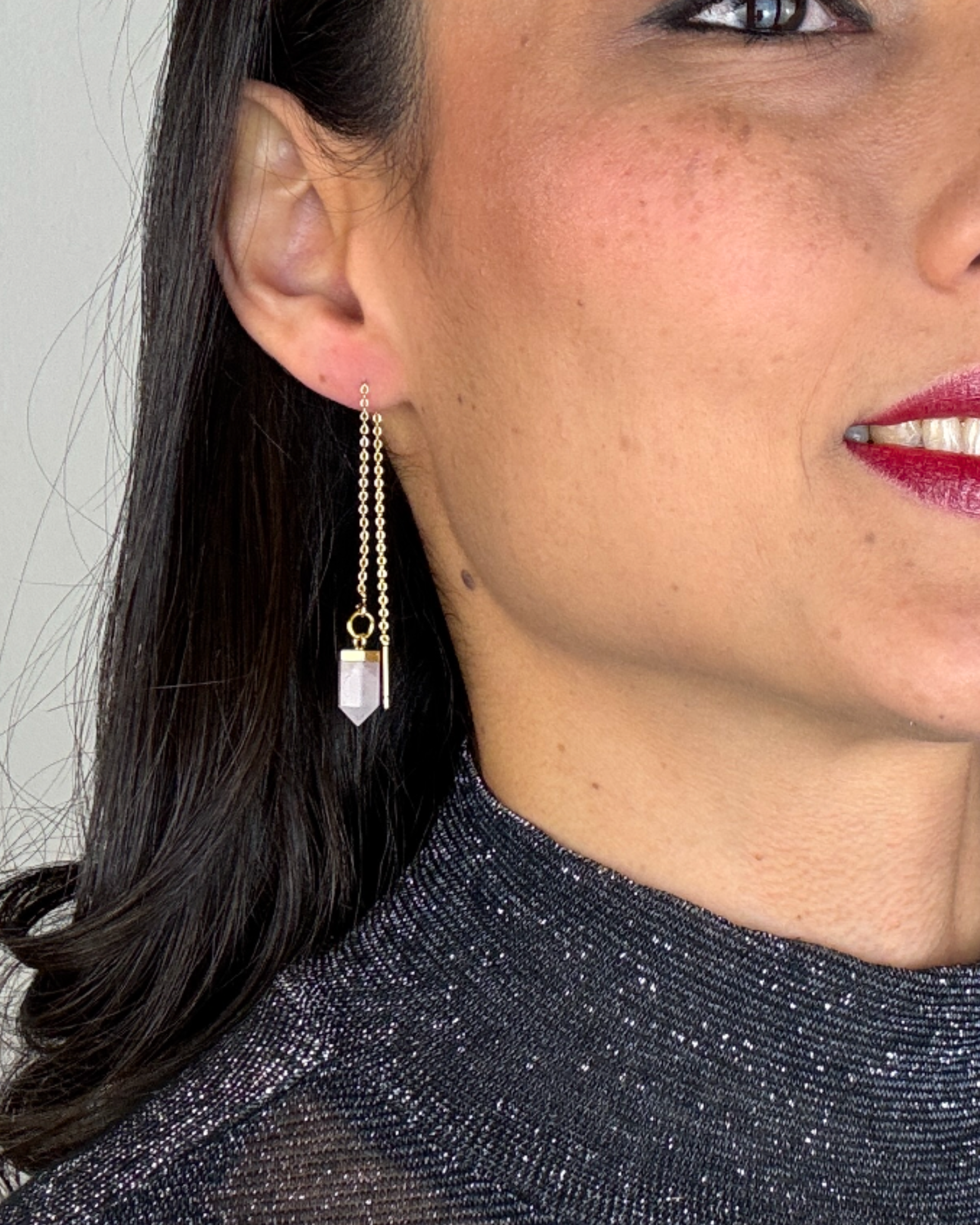 Estos aretes acompañan procesos de reconexión contigo misma, recordándote que cuidarte también es un acto de fortaleza.